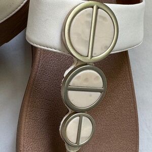 Fitflop Halo Metallic Cream Sandals with Gold and Cream Strap Details.Like New, rarely worn. Very Comfortable. Size 6. Brand runs very generous, I usually wear a 61/2 or 7 in other brands.