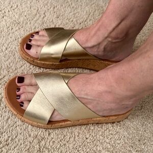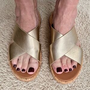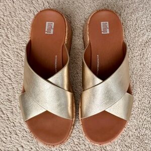 Fitflop F-Mode Metallic Leather/Cork “Flat form” Cross Slides US Size 08