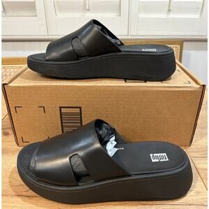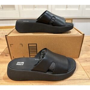 Fitflop F-Mode Raw-Edge Leather Flatform H-Bar Slide Size 7 Cushioned Comfy