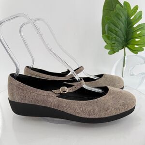 Fitflop F-Pop Mary Jane Ballet Flats Womeb 11 Beige Speckled Leather Wedge Comfy