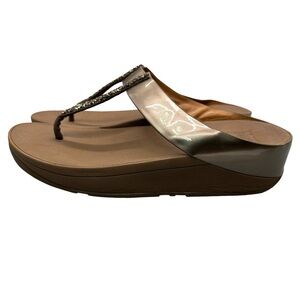 Fitflop Fino Toe-Post Flip Flops Bronze Wedge 9 Style #C89-012 Glitter Studded. Great condition see photos for details.