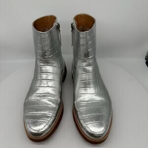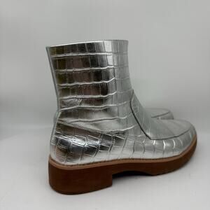 Fitflop Kinbey Croc Embossed Ankle Metallic Silver Boot Shoes Womens Size 6