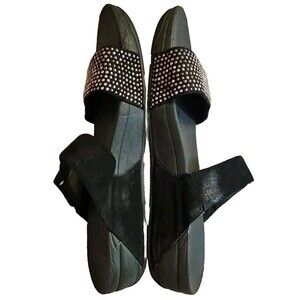 Fitflop LuLu Popstud Slide Sandal Women Sz 10 Studs Black Adjustable Felt B11