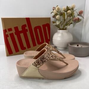Fitflop Lulu Shimmerfoil Platform Toe-Thongs Sandal Gold Women 5 NWB