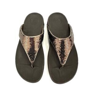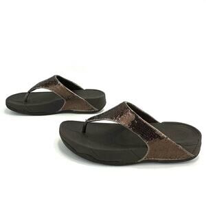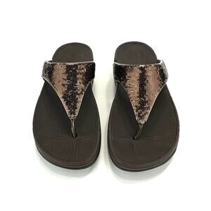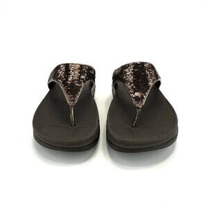 Fitflop Lulu Thong-Toe Sandal/Flip Flop Sz 8 Brown Sequin Arch Support Cushioned