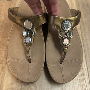 Fitflop Lunetta Bright Bronze Wobble Board Lightweight Thongs Sz 10 Style 181-266 in good pre-owned condition