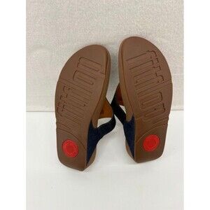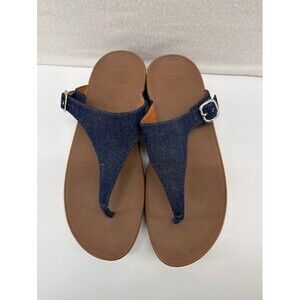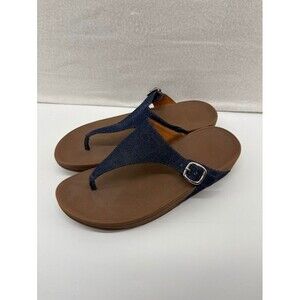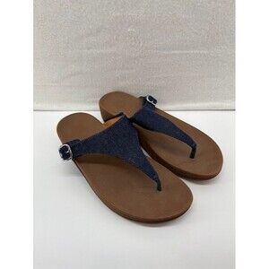 Stylish navy thong sandals. Comfortable brown footbed. Adjustable strap for perfect fit.