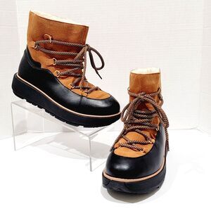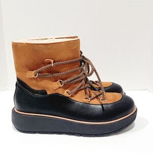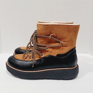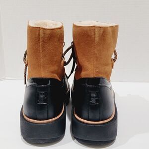 Fitflop Skandi Women Winter Boots Sz 9 Tan Brown Black Faux Fur Suede Ankle Snow