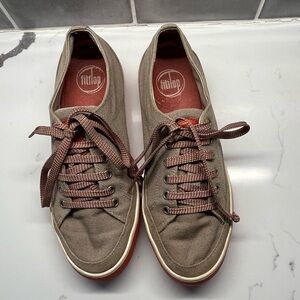Fitflop Sneakers Tan Canvas with Red soles and Red/white stripe Laces size 7
