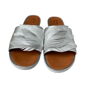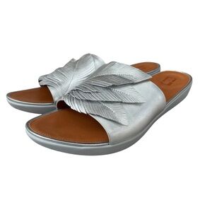 Fitflop Sola Silver Slide Leather Sandals Women’s Size 11 Feather Comfortable
