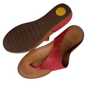 Fitflop Supercomff Women's Coral Red Leather Sandals size 7