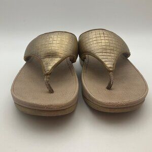 Fitflop Sz 6 Lulu Sleek Flip-Flop Thong Sandals Gold Metallic Wedge Comfort