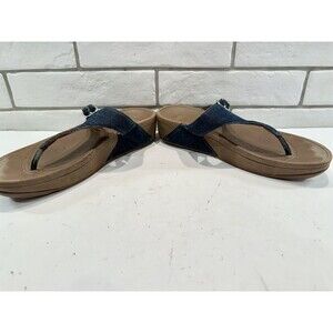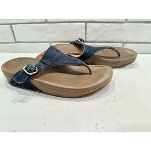 Fitflop The Skinny Sandals Blue Denim Slip On Leather Flip Flop Women’s Size 8