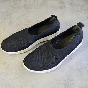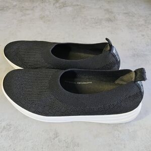 Fitflop Uberknit Ballet Flat Womens 8 Black Knit Slip On Comfort Travel Everyday