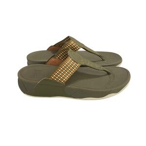 Fitflop Walkstar Thong Flip Flops size - 9, Green, fabric straps, leather