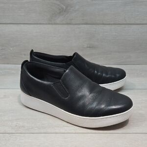Fitflop Women RallyLeather Platform Black Cush Slip-On Shoes Sneakers Shoes Sz 7