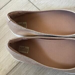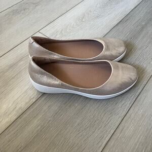 Fitflop Women's 7 Superballerina Glitzy Ballet Flat Gold Comfort Shoe Slip On
