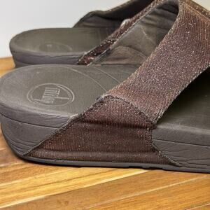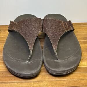Fitflop Women’s 8 Brown Glittery Supportive Comfort Flip Flops Sandals A85-012