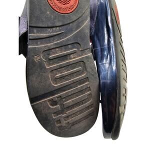 Fitflop Women's 9 M Metallic Blue Leather Sandals Toe Thong Beaded Fringe