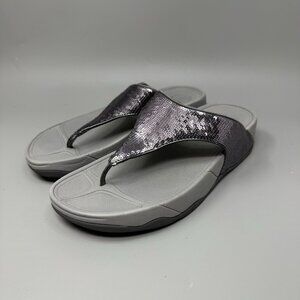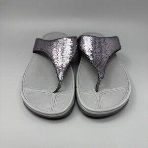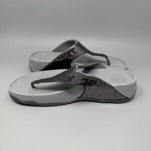 Fitflop Women's Electra Classic Thong Pewter Sequin Flipflop Size 8 Silver