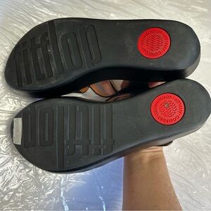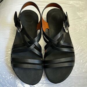 Fitflop Women’s Naia Black Wedge Leather Sandals Strappy Comfort Mature 41 / 9