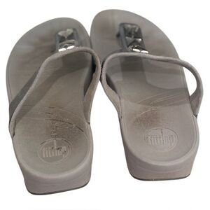 Fitflop Womens Pietra Pewter Leather T-Strap Sandals Rhinestone Thong Size 7