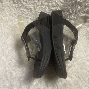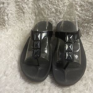 Fitflop black synthetic Black patent Studded wedge Sandals SZ11 .Pre owned in good used condition signs of wear on the inner and outer soles see all pictures any questions please message. E3