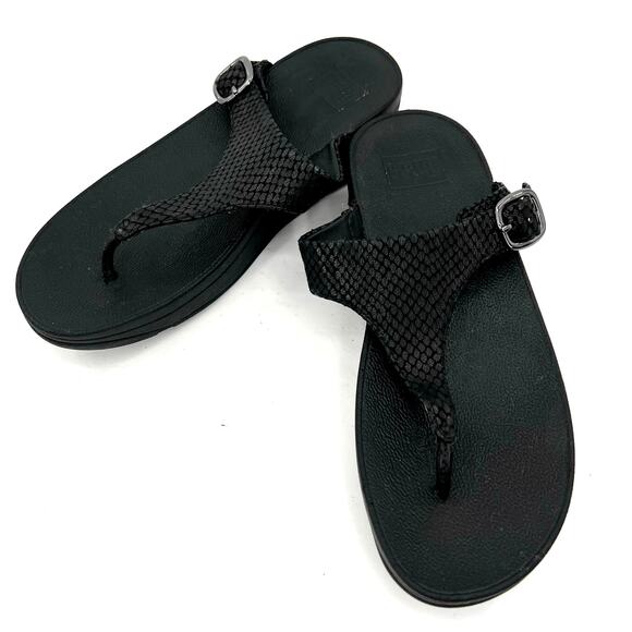 Fitflop women’s The Skinny Black Snake leather flip flop platform sandals shoes