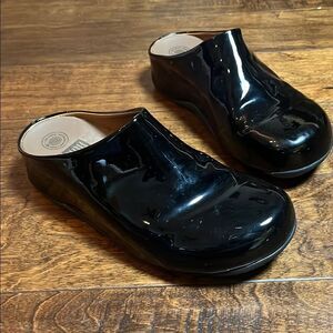 Fitflop Black Patent Leather SHUV Leather Clogs, size 9