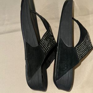 So cute! These Fitflops feature a glamorous sparkly embellishment on the wide strap. The all-black design ensures versatility, while the shimmering sequins add a touch of sophistication to any outfit. Great condition!
