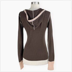 Fitigues 100% Cashmere Waffle Knit Brown Nude Peach Contrast Hoodie Sweater XS