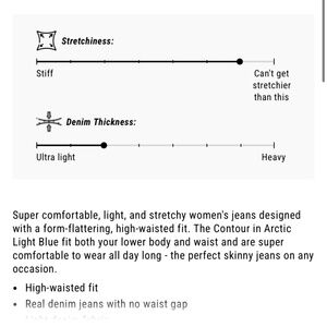 Super comfortable, light, and stretchy women's jeans designed with a form-flattering, high-waisted fit. The Contour in Arctic Light Blue fit both your lower body and waist and are super comfortable to wear all day long - the perfect skinny jeans on any occasion.