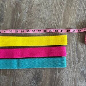 A set of 3 vibrant fabric long resistance bands in various strengths (light, medium, heavy), perfect for strength training, physical therapy, mobility routines, low-impact exercises, and warming up.