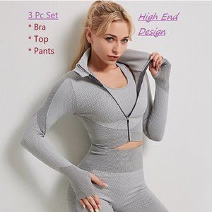 Matching 3 Piece ActiveWear set - High Waist Yoga Pants, Matching Zipper Top + Sports Bra