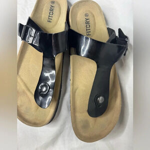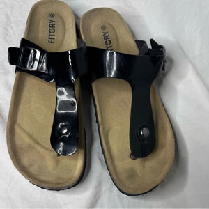 Fitory Black Patent Pleather Thong Sandals Size 10