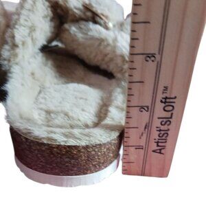 Comfortable and stylish faux fur slippers for women, featuring adjustable straps and a durable cork sole. Ideal for indoor or casual outdoor wear.brand new with box from smoke enviroment