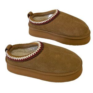 Fitory Sherpa Lined Platform Slippers Womens Size 8 Chestnut Brown Earthy Boho