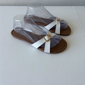 Fitory White Slide Sandals Gold Buckle Size 9 Summer Vacation Beach Cruise