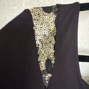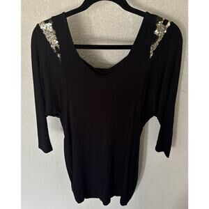 Fitted Black Gold Party Mini Dress Scoop Neck 3/4 Sleeve Sequin Stretch Size S