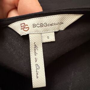 Add a touch of glamour to your party attire with this fitted black mini dress from BCBGENERATION. The dress features a scoop neckline and long slit sleeves, with a pullover closure for easy wear. The flannel fabric is accented with sequins, adding a touch of sparkle to your look.