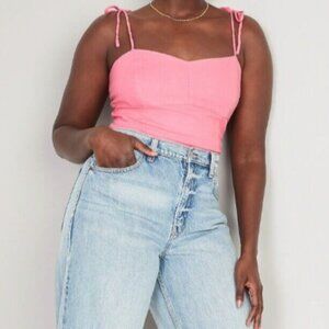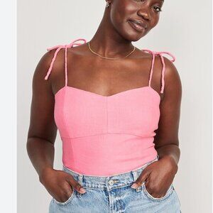 ⭐️Fitted Linen-Blend Tie-Shoulder Cropped Hipster Boho Classy Minimal Cami Top