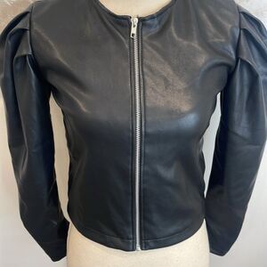 Fitted Long Puffed Sleeeve Pleather Jacket