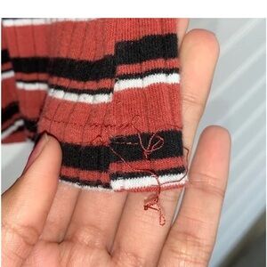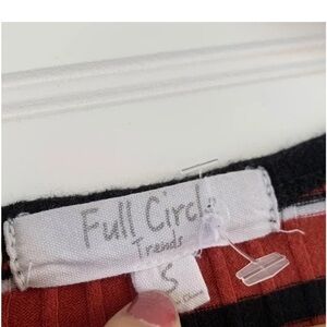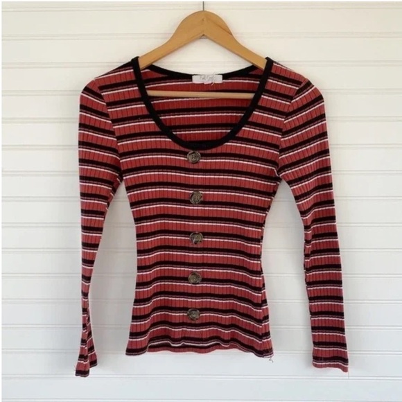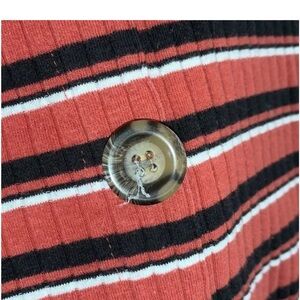 Full Circle Trends burnt orange black and white striped ribbed u-neck long sleeve shirt with buttons