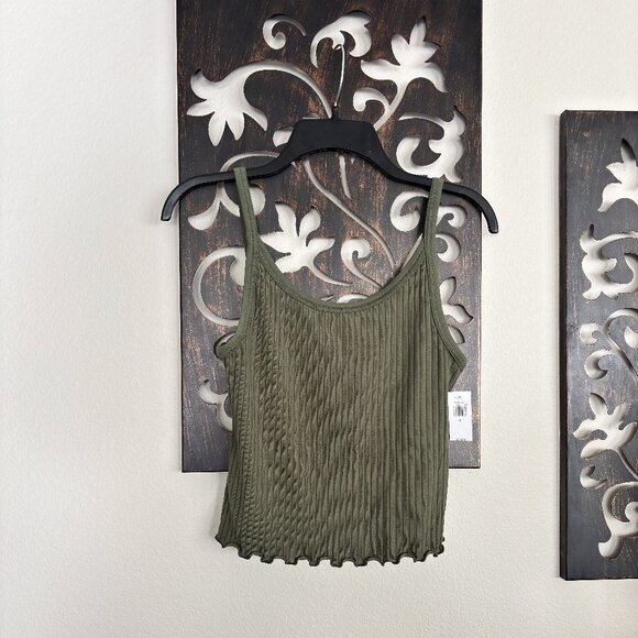 New with tags! Scoop neck Hits at waist Lettuce-edge hem