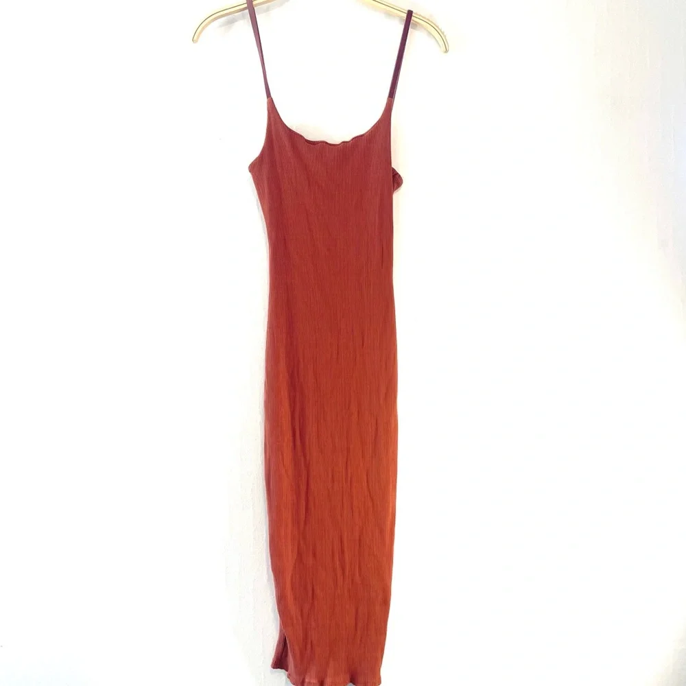 This ribbed dress is perfect for any occasion. Its sleek design and rich color make it a standout piece in your wardrobe. Material is thick and stretchy. Double layer on top part.