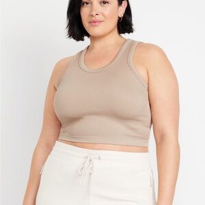 Fitted scoop neck sleeveless top. Hits at waist, provides light support for a-c cups. Nice thick material.