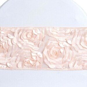 Satin Rosette Fitted Chair Sashes Set of 25 Light Blush Pink Spandex Wedding Banquet Decor Chair Band Party Event Decoration