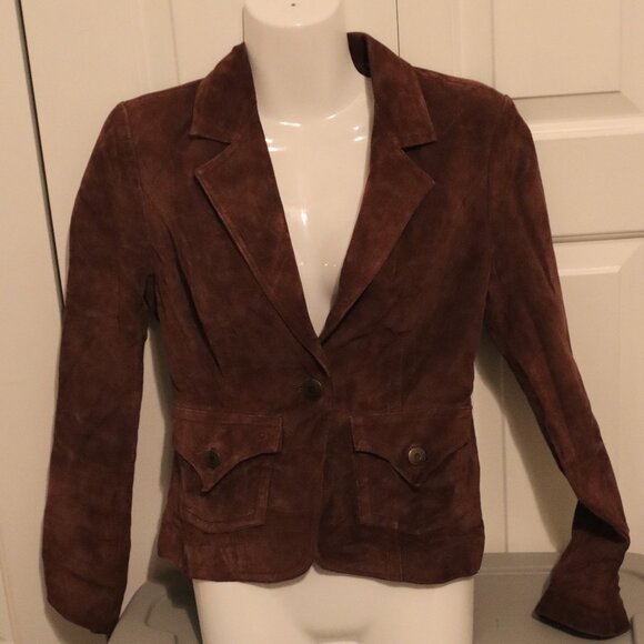 Fitted Suede Leather one button Charlotte Russe jacket Small 100% leather Brown