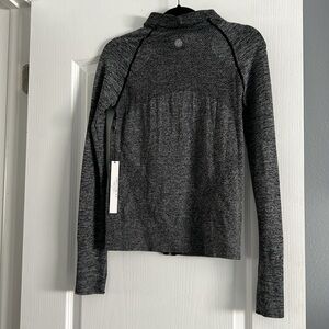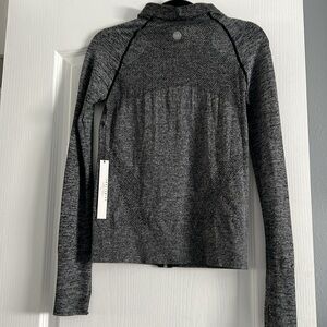 New with tags, IAB MFG, Fitted black & grey marl zip up athletic spandex jacket in size Large with thumbholes. Jacket is gorgeous, stretchy, and soft. 92% polyester and 8% spandex.
