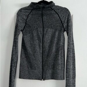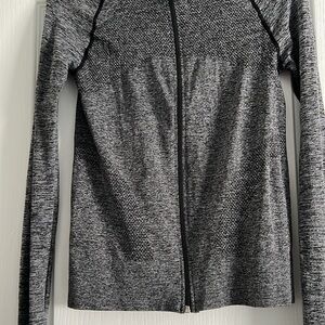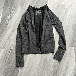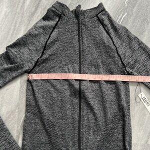 Fitted black & grey marl zip up athletic spandex jacket Large thumbholes